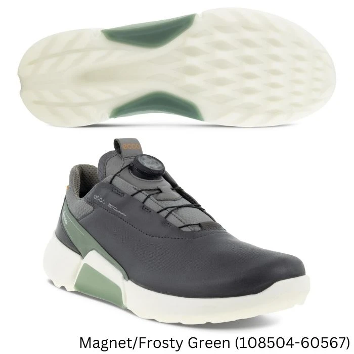 Sleeker, sportier and more youthful, the upgraded ECCO M GOLF BIOM® H4 offers fresh, minimalist style that perfectly matches the innovative comfort and performance. The update includes the addition of the state-of-the-art BOA® Li2 dial, which can be twisted in both directions so you can quickly loosen or tighten for a micro-adjustable, precision fit and dialled in performance. Powered by BIOM® NATURAL MOTION® technology, this men’s hybrid is crafted from ECCO leather that adds durability as well as style, while the GORE-TEX waterproof technology will keep your foot dry in wet conditions. The ECCO MTN GRIP outsole provides stability, traction and rotational support through three different sections while the PU midsole with TPU inserts on either side securely hugs your foot and adds stability.