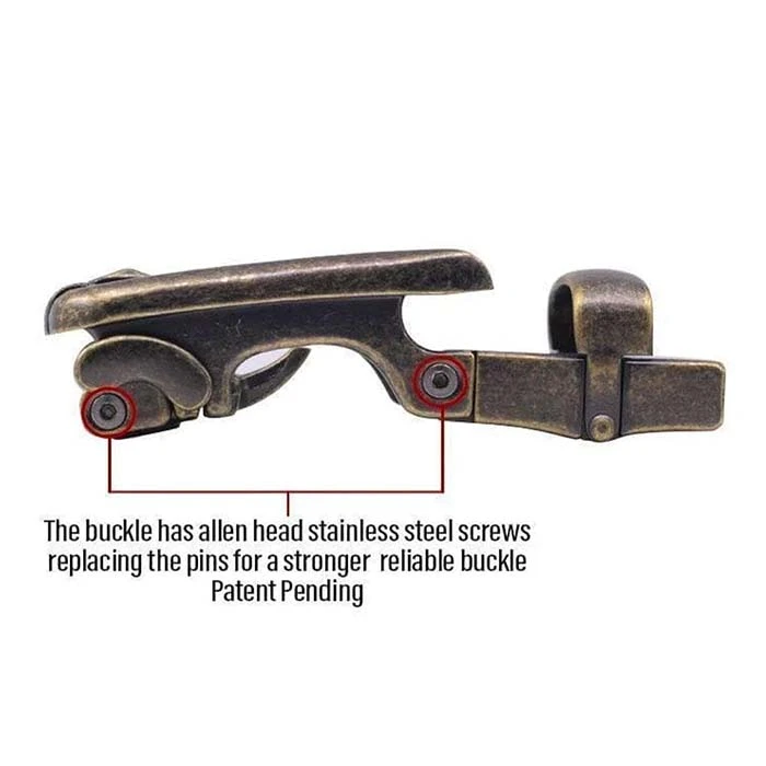 - Distress brass buckle with a knurled tipÂ