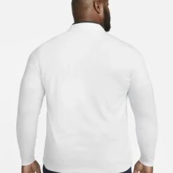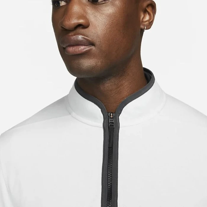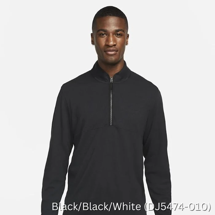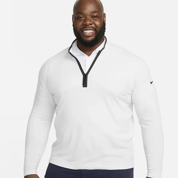 The Nike Dri-FIT Victory Top puts a soft spin on comfort. Its lightweight fabric pairs the look of your favorite sweater with the performance of technical mesh. Plus, the notch in the front of the collar lets you address the ball without fabric—or a zipper—bunching under your chin.