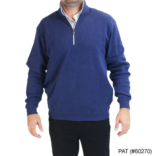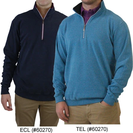 Triple sueded pima cotton interlock with amazing luxury. A 1/2 zip long sleeve pullover with contrast rib collar, contrast zipper stitching, 100% Cotton.A pullover so soft, you’ll never want to take it off.