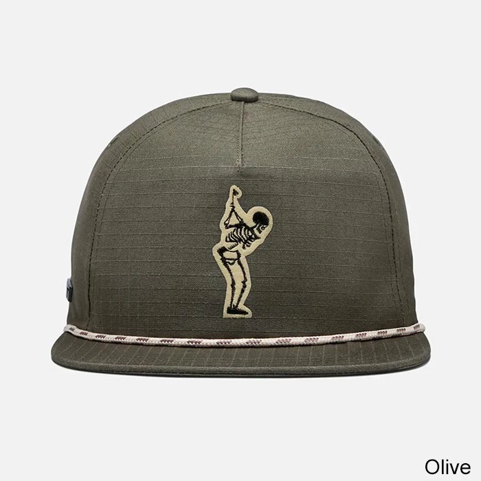 A more utilitarian iteration of the “rope” hat inspired by our Pacific Northwest roots. TRUEs ripstop rope brings a fresh, rugged, outdoor aesthetic to the golf course, or wherever else you traverse. Now featuring the iconic TRUE Dead Golfer.